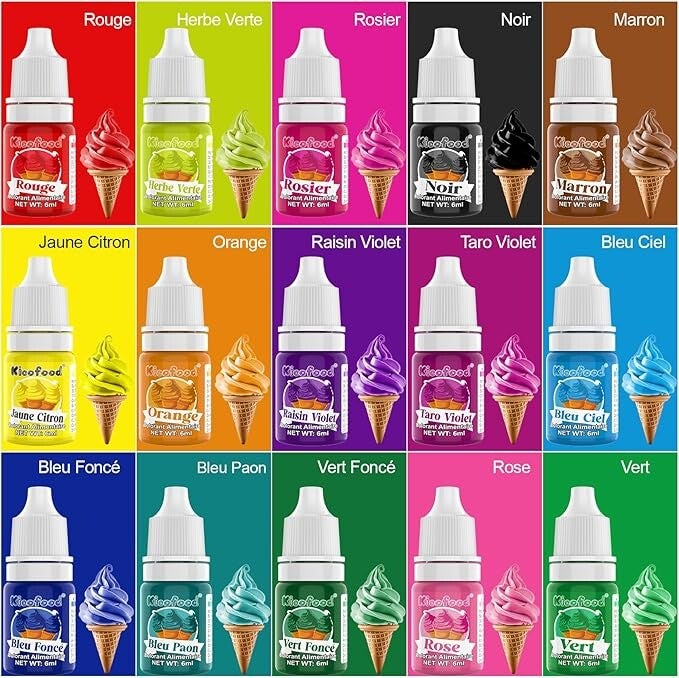 Quelques gouttes de colorant alimentaire gel (au choix parmi les 15 couleurs Kicofood)