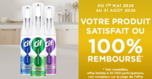 Pour bénéficier de cette offre achetez entre le 01 mai 2025 et le 31 aout 2025 (date ticket de caisse ou facture faisant foi), 1 produit ou 1 produit CIF.